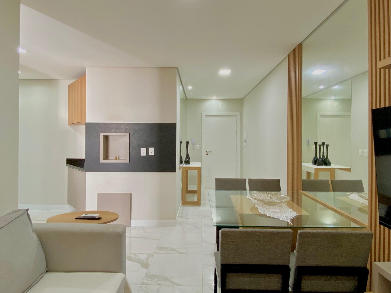 Belíssimo apartamento finamente mobiliado e decorado, com vista liberada para serra, cozinha em conceito aberto, living com sala de jantar e sala de estar, com 1 vaga de garagem com espaço amplo para manobra, localização privilegiada em região nobre de Capão junto aos principais restaurantes, mercados e recursos, ao lado da Avenida mais valorizada da cidade e a quatro quadras da praia. Edifício com padrão construtivo AAA, com uma Infraestrutura completa, salão de festas principal e espaço gourmet, brinquedoteca, espaço fitness, espaço pet, roof garden, bicicletário, esquadrias externas em PVC, medidores individuais de água e gás.
