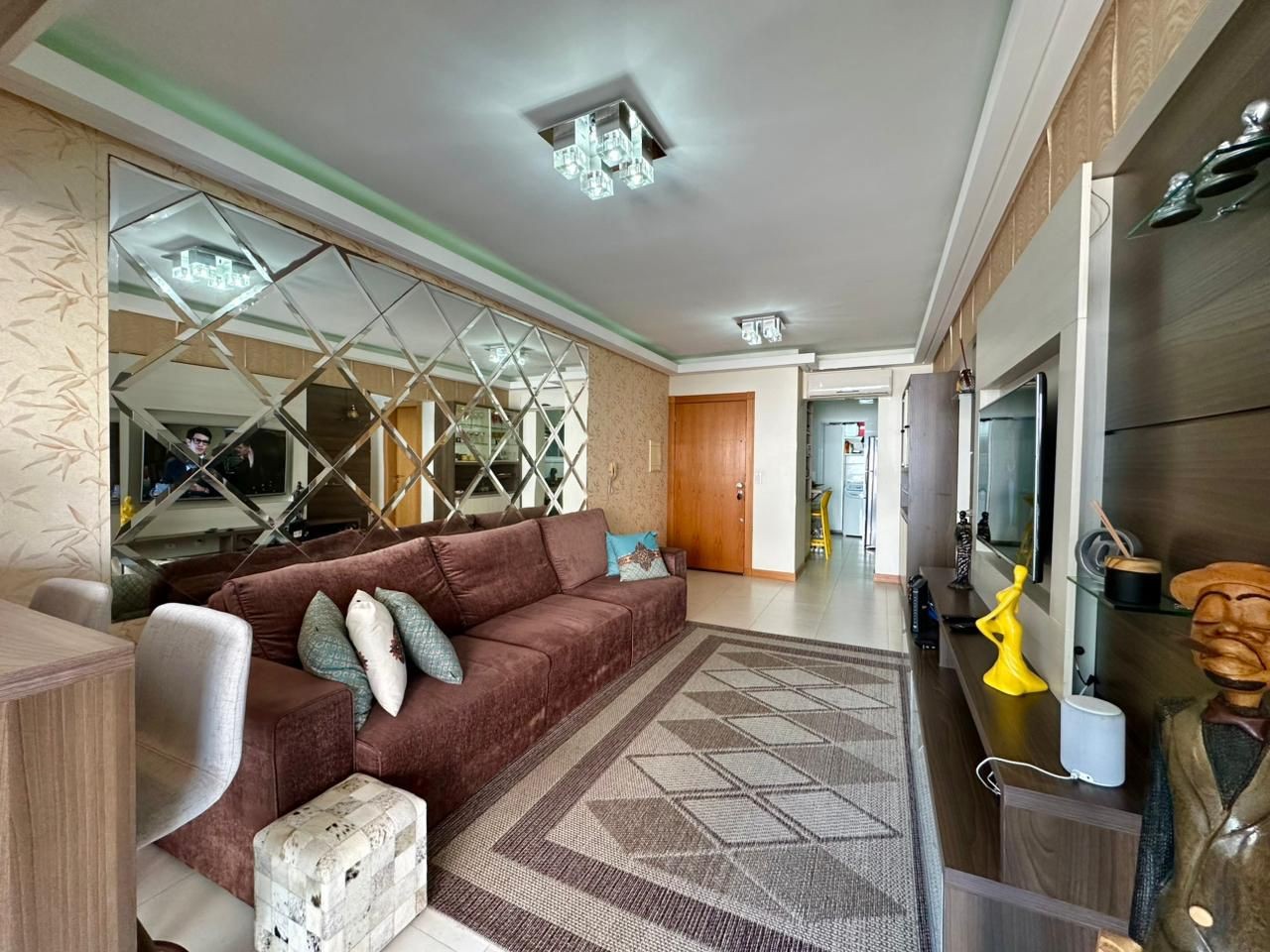 02 Dormitórios (01 suíte) Banho social Living Integrado Frente LESTE (sol da manhã) Mobiliado/Decorado Climatizado (3 ar condicionado) 109 M² área privativa 01 MEGA Box (cabe Hilux) Edifício 02 Elevadores Zelador Permanente