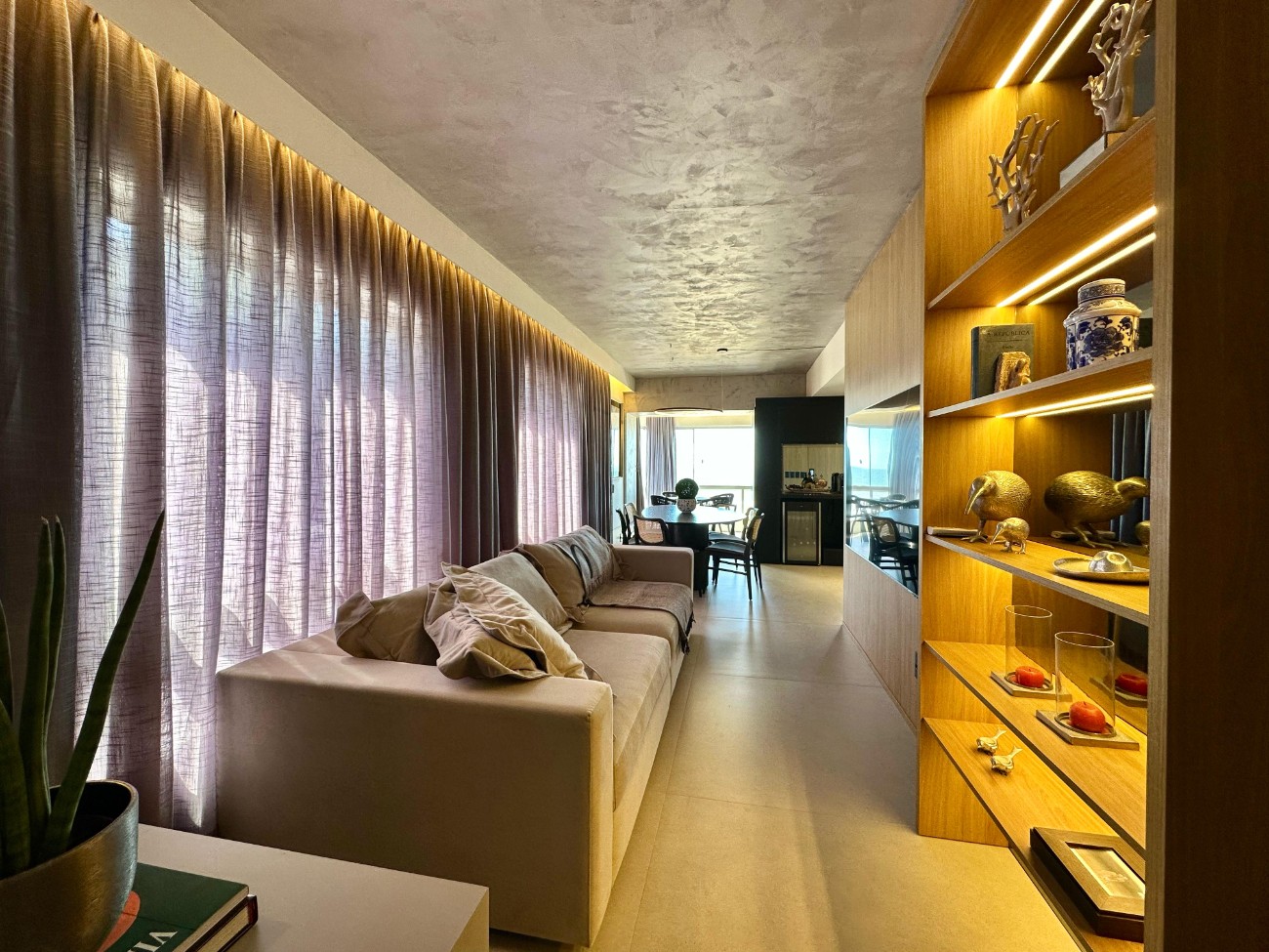 03 dormitórios ( 01 suíte com banheira ) Mobiliado Decorado Living de estar e jantar Cozinha com ilha Sacada com churrasqueira 117 M² privativos 01 Elevadores Zelador permanente Um apartamento por andar Hall privativo Salão de festas