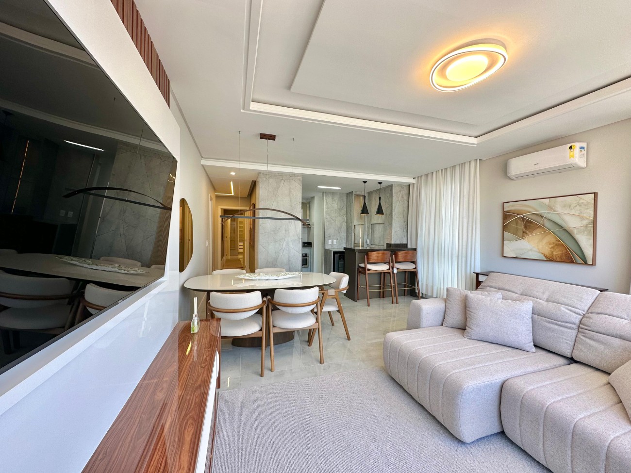 03 dormitórios ( 01 suíte ) Lavabo Leste/Norte Mobiliado & Decorado Amplo living Integrado Cozinha e área de serviço 98 M² área privativa 01 Box Edifício 02 Elevadores Hall decorado Salão de festas
