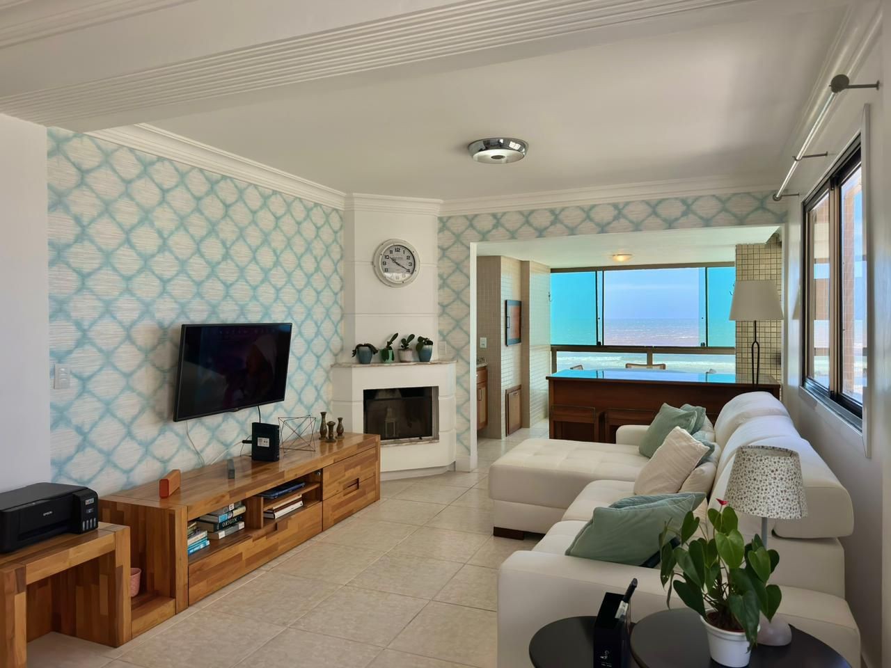 03 dormitórios (1 suíte) Banheiro social Mobiliado Vista 180 graus para toda orla Nascer do sol na sacada Apto 139 m² privativos 02 box de garagem Vista para o mar de todos dormitórios
