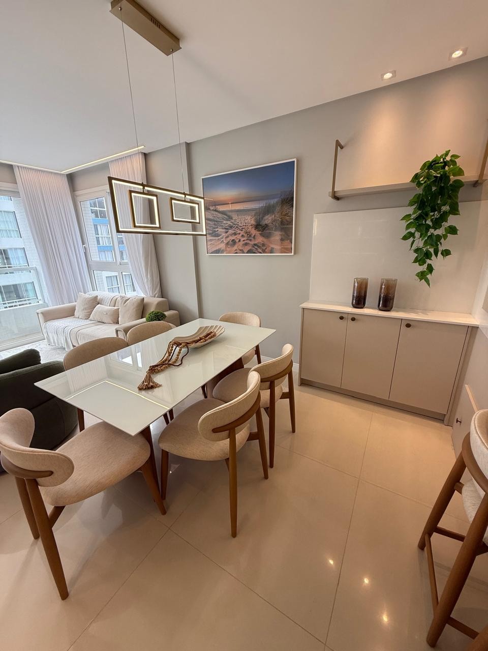 Apartamento composto por três suítes, lavabo + banho social, living em dois ambientes, cozinha estilo americana, totalmente mobiliado e uma vaga de garagem. Imóvel finamente mobiliado e decorado, um espetáculo de decoração em detalhe de acabamento de extrema qualidade; além de sua localização privilegiada ao lado da Ubirajara. De frente no 9º andar com uma vista exuberante da serra, mais a sofisticação não fica só no interno do apartamento, contando com a infraestrutura de tirar o chápeu. Edifício alto padrão com infraestrutura completa salão de festas, piscina, academia e sal de jogos, conta também com dois elevadores, fachada revestida, zeladoria permanente, hall decorado, portão e porteiro eletrônico. Localizado no bairro navegantes, junto avenida Ubirajara ao lado da praça e poucas quadras do mar.