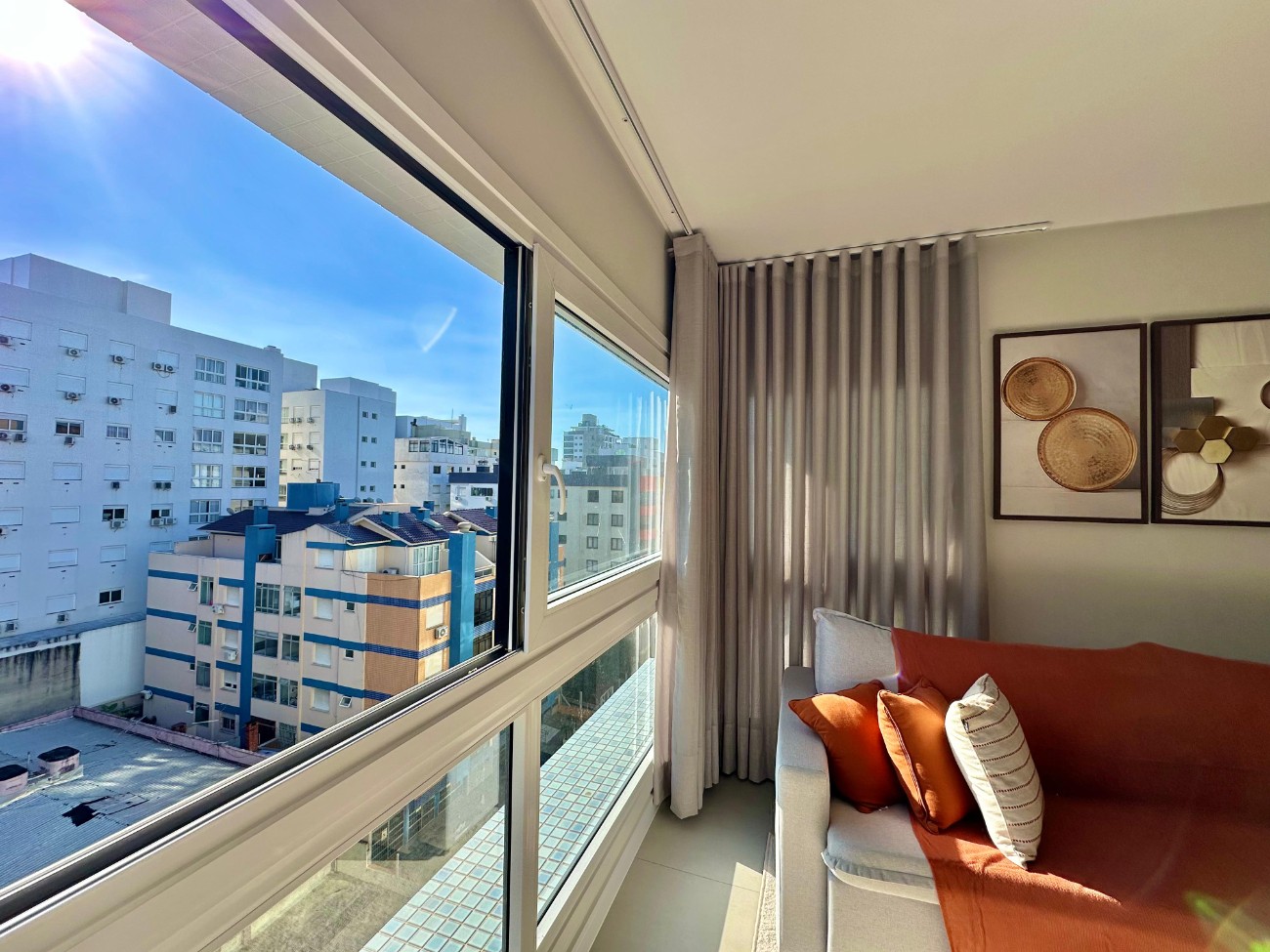 Apartamento de alto padrão com três dormitórios, sendo uma suíte, além de lavabo e banho social. Imóvel mobiliado, localizado em ótimo andar intermediário, com ambientes amplos e bem distribuídos. Possui cento e quarenta e três vírgula trinta e um metros quadrados de área. Conta com duas vagas de garagem (dois box).O edifício oferece hall de entrada decorado, dois elevadores, acesso com sensor facial, piscina aquecida, academia, salão de festas e espaço kids. Dispõe ainda de rooftop com vista panorâmica em trezentos e sessenta graus para o mar, a serra e a cidade.