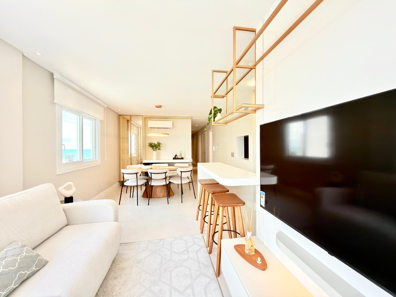 03 Dormitórios (1 suite) Living integrado estar e jantar Totalmente Mobiliado e decorado Churrasqueira Cozinha americana e área de serviço separada Vista mar Sol da tarde Apto com 82 m² Privativos 01 Box com 12, 50m² Privativos Edifício Piscina e salão festas 01 Elevador?Hall decorado