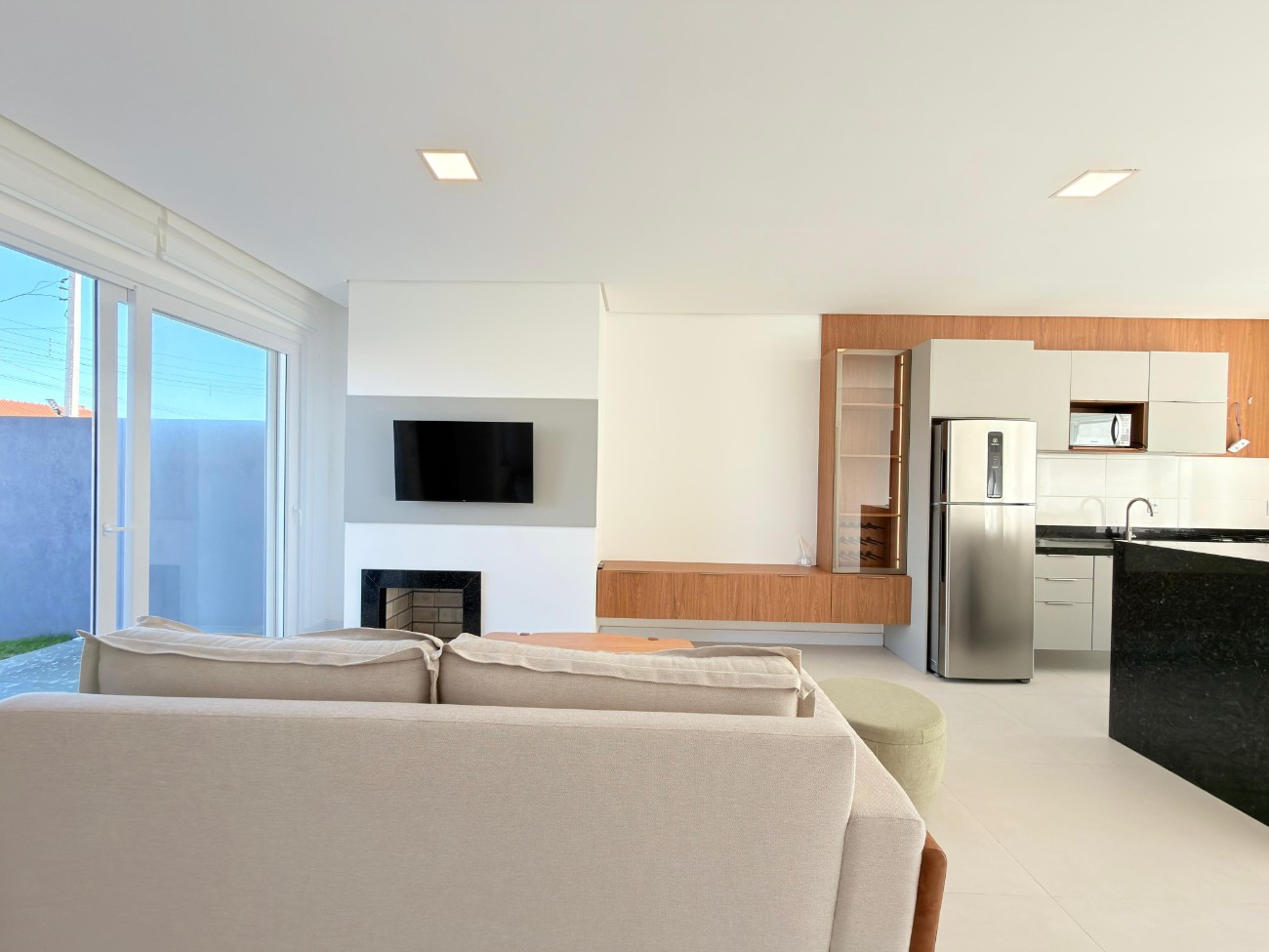 - 03 dorm sendo 01 suíte - Living integrado - 120 M² Área construída - Mobiliada - Pronta para uso - Frente leste - 150 metros do mar - Lareira - Esquadrias em PVC - Lavabo - Lavanderia