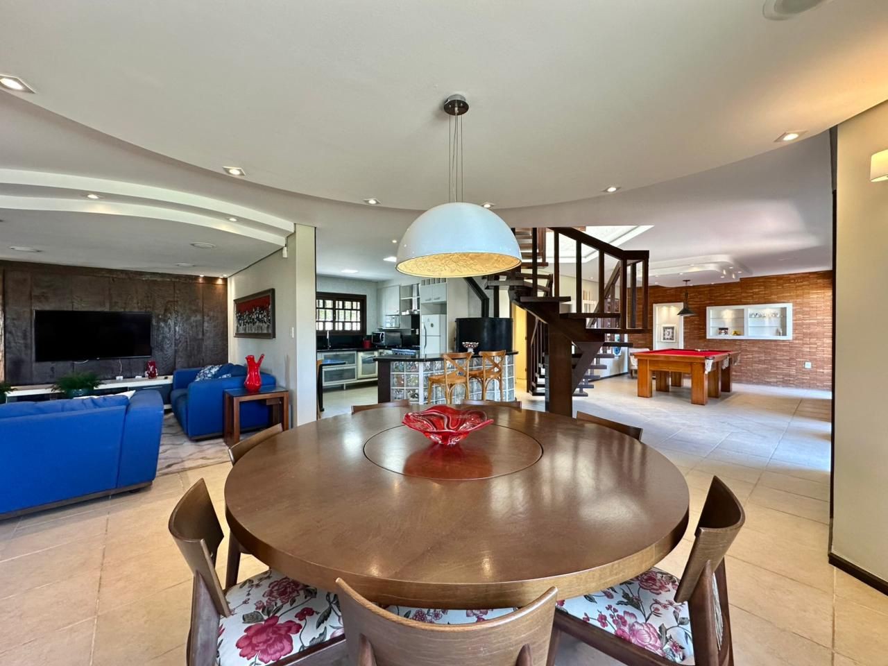 05 suítes (03 leste/norte com sacada) e 01 master com hidromassagem; Mobiliada e decorada; Dependência de empregada com Lavanderia; São 03 terrenos com metragem total de 1403 m²; Mansão com piscina, espaço gourmet, quadra de futsal; Metragem privativa de 312 m²; Cozinha americana com forno de pizza; Sala de jogos com mesa de bilhar; Paisagismo conectando os terrenos junto à casa; 06 vagas de garagem.