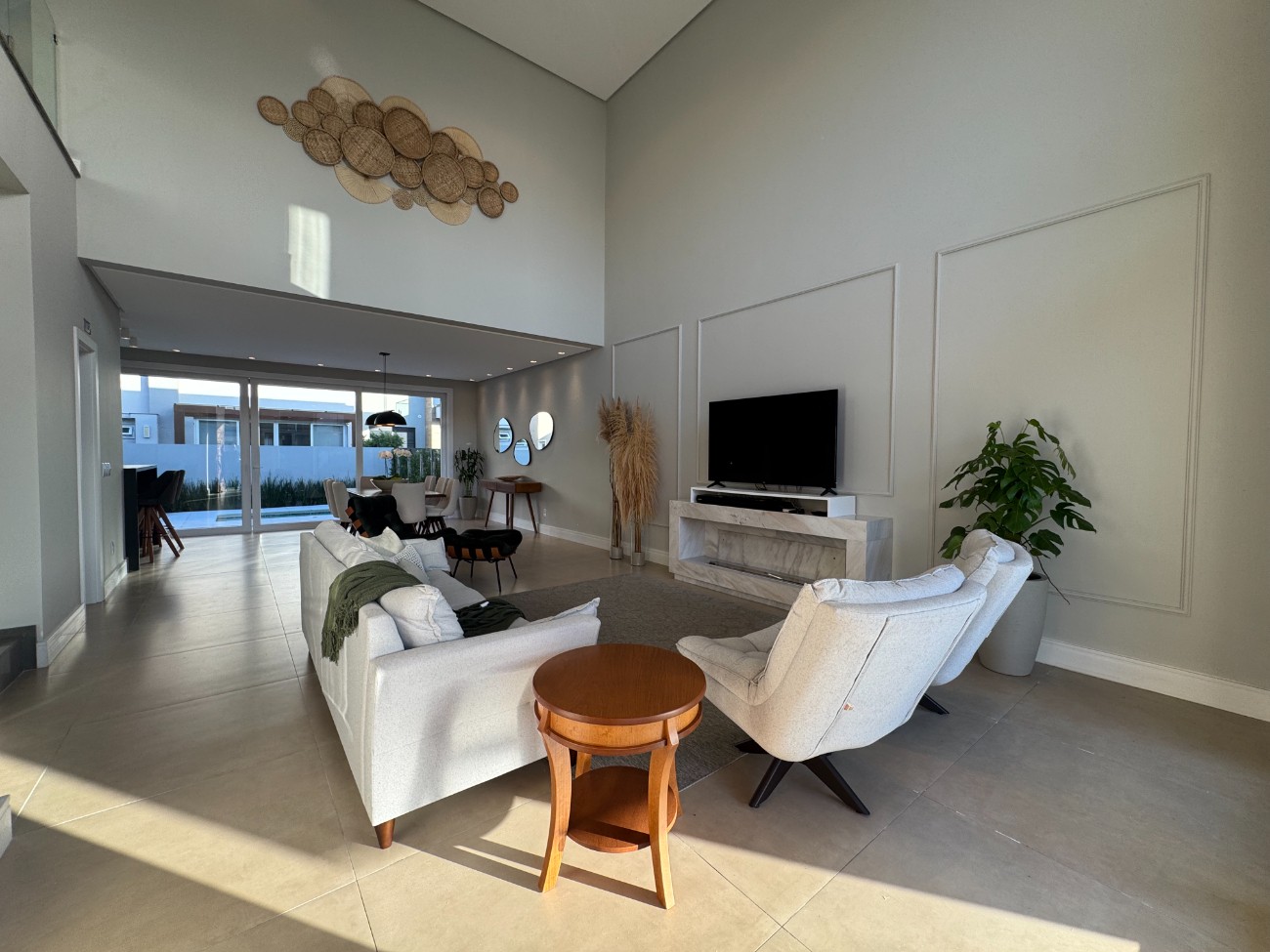Residência no Condomínio Blue, com 4 suítes, sendo uma delas no térreo, acabamento impecável e alto padrão de construção. O living amplo integra a cozinha americana ao espaço gourmet, proporcionando um ambiente moderno e funcional. Conta com garagem coberta para 2 carros, piscina com aquecimento solar, aberturas em PVC e toda a praticidade de estar totalmente mobiliada e decorada. Uma oportunidade exclusiva para quem busca conforto, sofisticação e a experiência de viver em um dos condomínios mais valorizados da região.