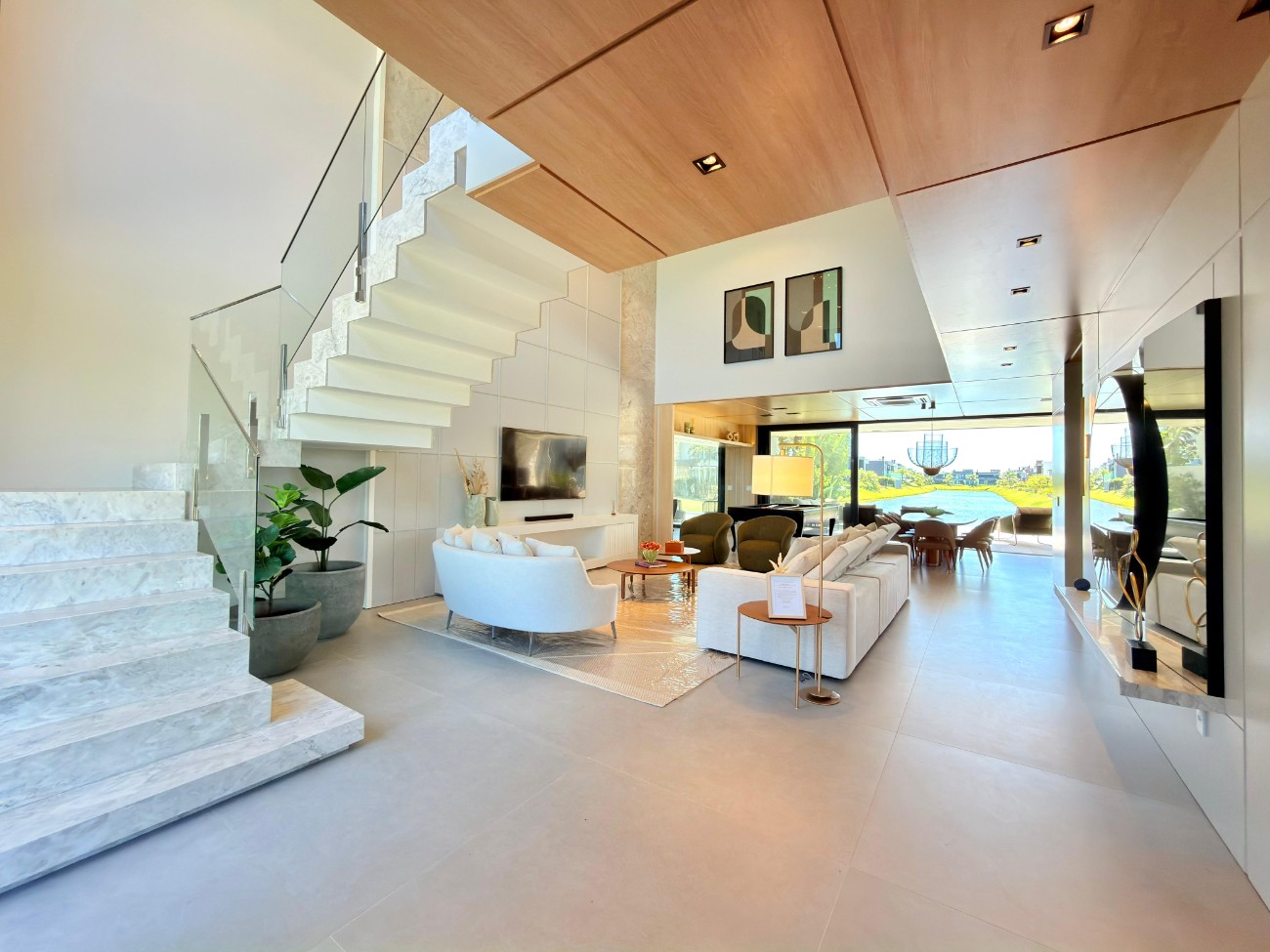 4 suites sendo 01 suite master Living em 03 ambientes amplos Pé direito duplo Cozinha em “Ilha” Finamente Mobiliada e decorada Homeoffice e rouparia com tulha 345 M² de area privativa Melhor vista para o lago Piscina com borda infinita e aquecida Área Gourmet externa Aspiração central Automação e placa solar Weg Esquadrias em PVC pretas persianas automatizadas Garagem para JetSki