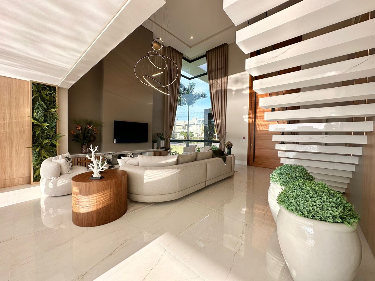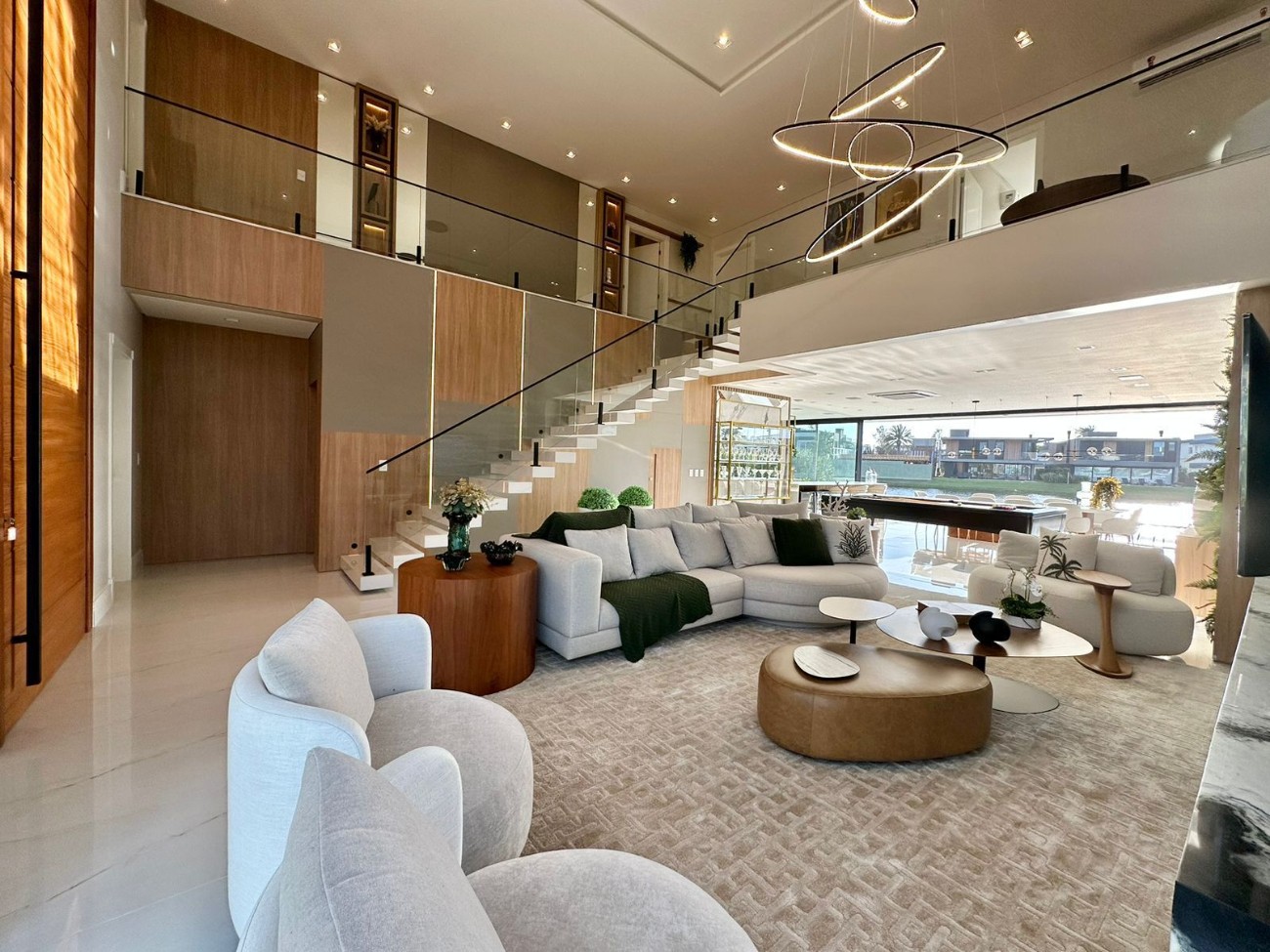 Casa com 426 m² Lote Beira lago 05 Suítes(Uma master e uma térrea) Dependência de Empregada Lavabo Mobiliada Decorada Piscina com borda infinita e cascata Pé direito Duplo Automatizada Cinema Irrigação Automatizada