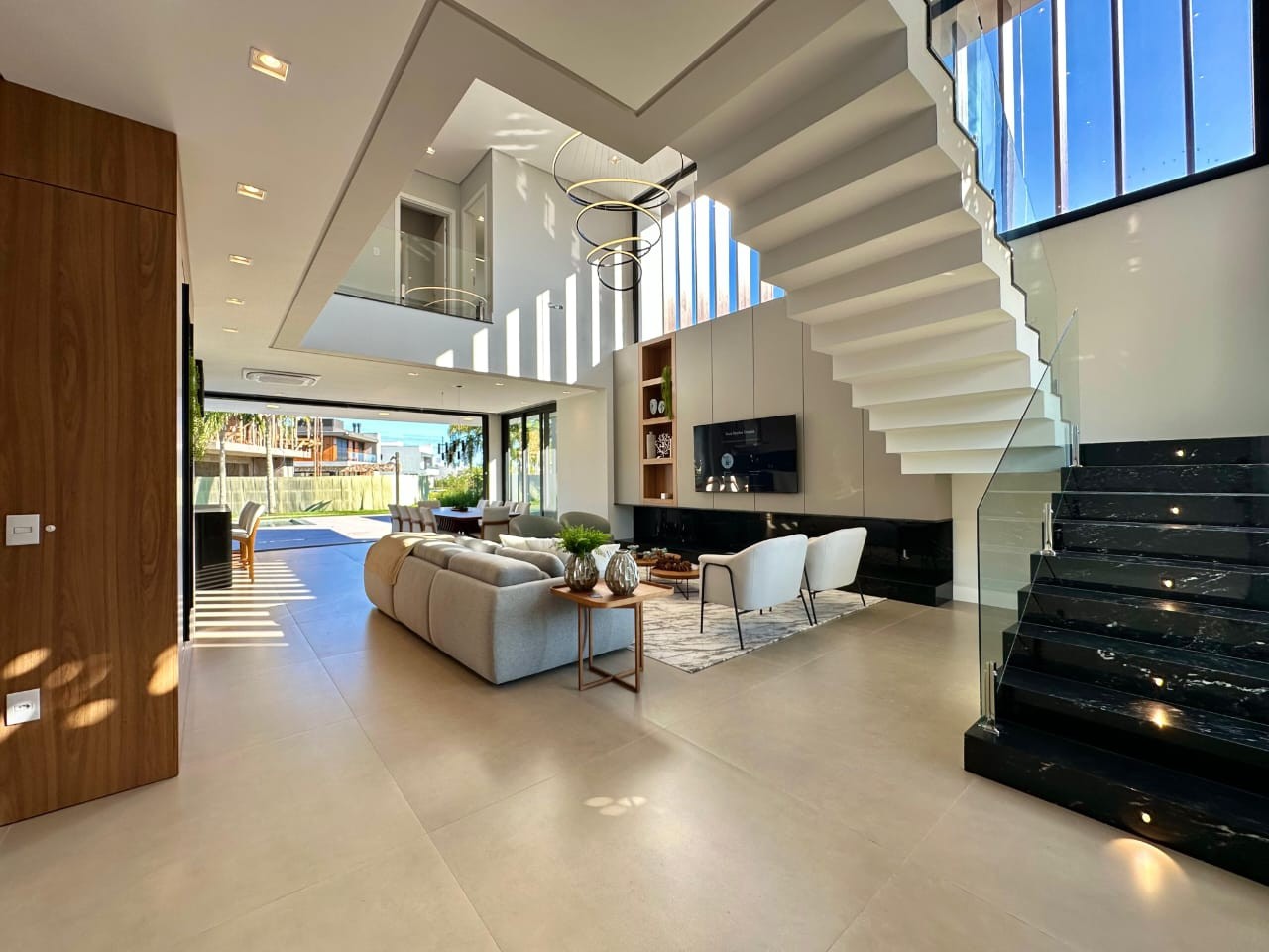 560, 00 m2 área terreno 356, 70 m2 privativos construídos; Piscina de concreto com área de 50, 00 m2; 5 suítes (sendo 1 térrea); Finamente Mobiliada e decorada Abrigo para 2 carros; Esquadrias em PVC;