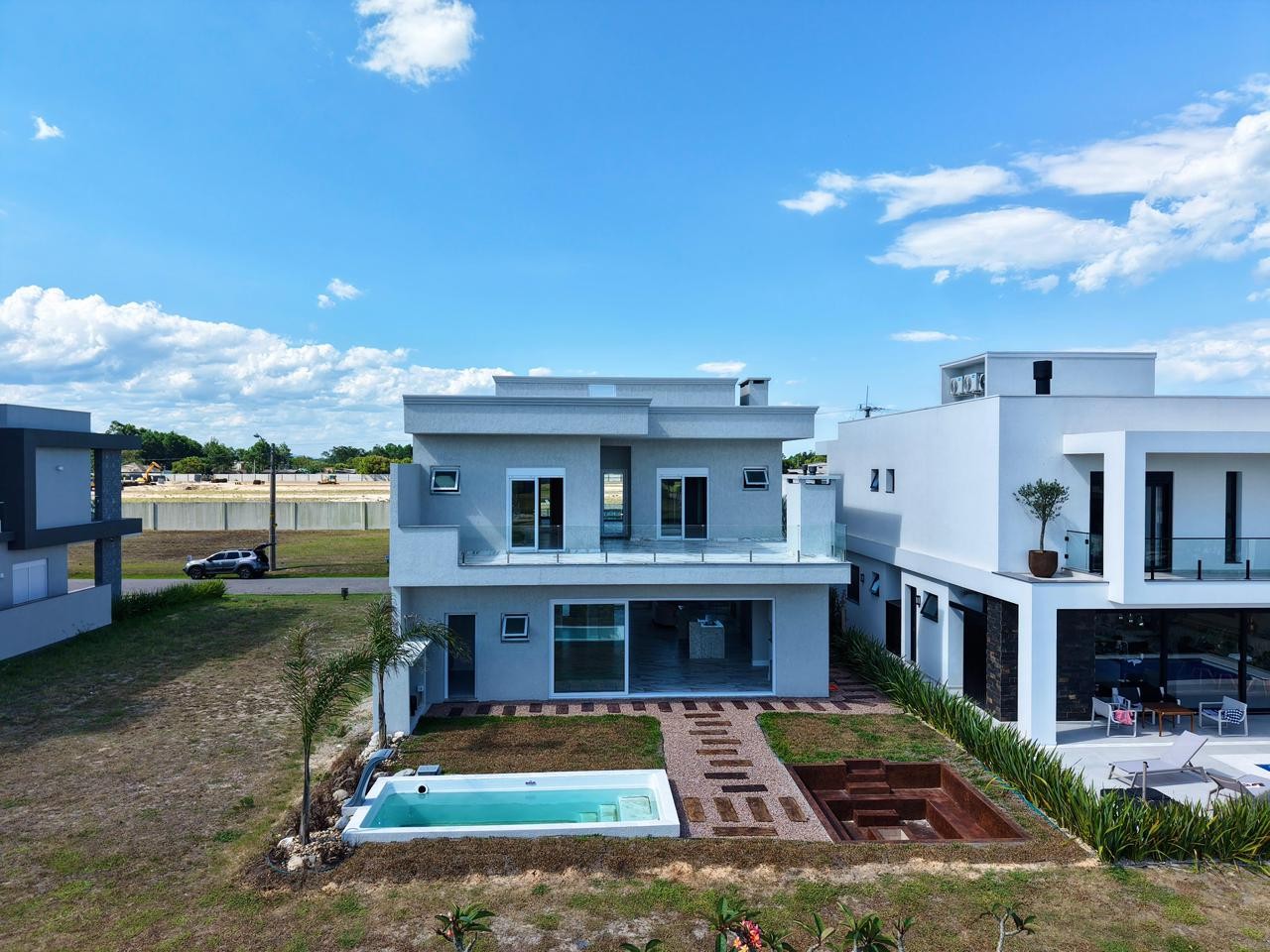 Sobrado com 330 M² Lote Beira lago 04 Suítes ( sendo uma no térreo e uma master com closet ) Lavabo Muita Iluminação natural Piscina Paisagismo Lareira Churrasqueira Móveis fixos Living integrado Aberturas em PVC Fogo de chão (Fire Pit) Terraço amplo Vaga para 2 carros CONDOMÍNIO Infra completa Academia?Piscina?Quadras esportivas?Salões de festas Espaço kids
