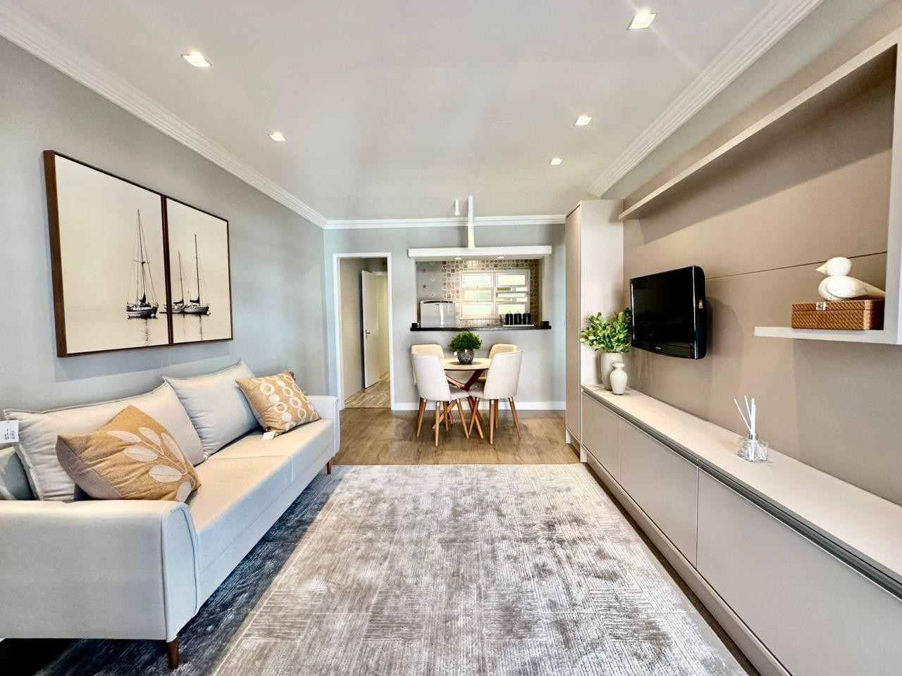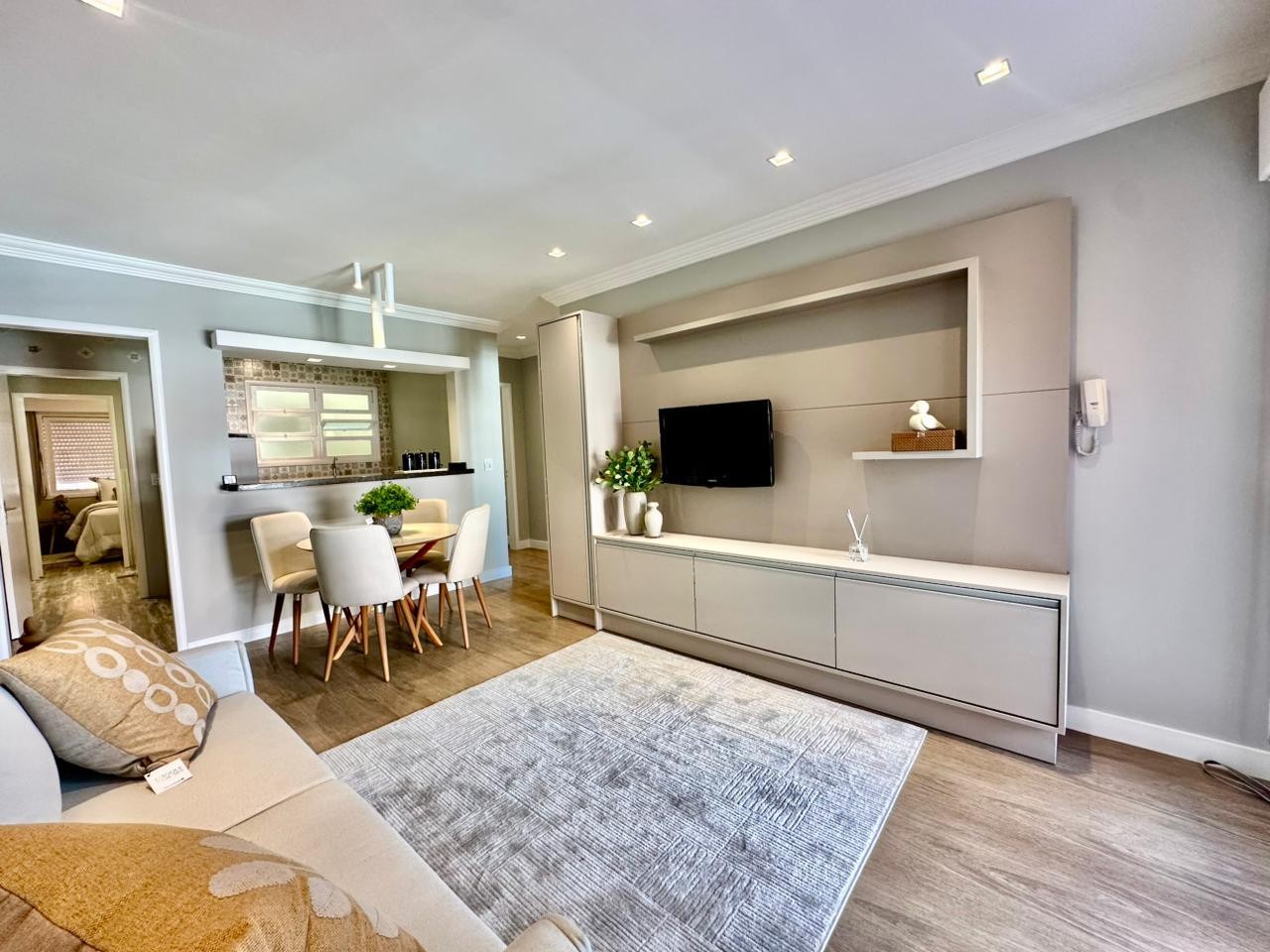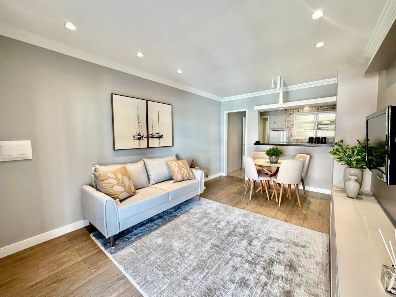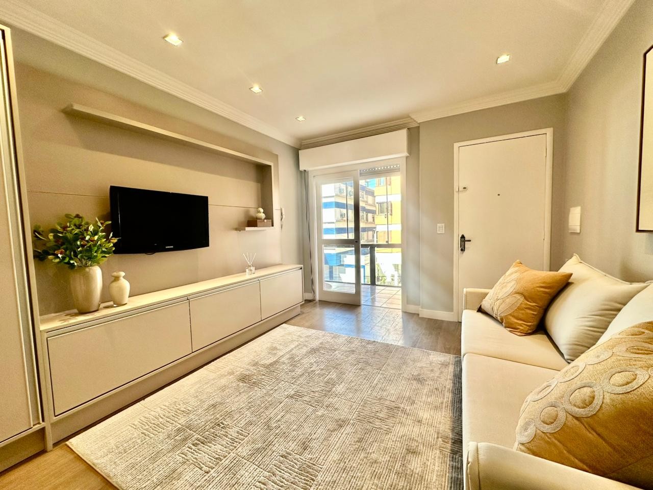 Novidade à venda ao lado da Praça Flávio Boianovski! Excelente apartamento com sacadão de frente, dispondo de dois dormitórios + dependência de empregada completa, sendo uma suíte, banheiro social, sala de estar e jantar integrados, cozinha com bancada gourmet, área de serviço individual com churrasqueira e vaga de garagem de fácil acesso. Recentemente repaginado, mobiliário completo, piso vinílico contendo a temperatura nos principais ambientes, banheiros reformados e rodapés dando outro visual para o imóvel! Situado à uma quadra do mar e ao lado da praça mais desejada da região, a Flávio Boianovski se tornou grande ponto de referência por estar cercada de importantes pontos comerciais e reunir famílias aos finais de tarde! Marque uma visita agora mesmo e não irá arrepender!