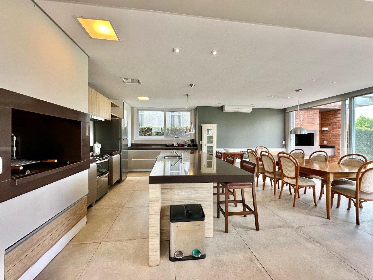 Lindo sobrado em um dos condomínios mais luxuosos de Xangri-Lá, o Enseada. Localizado beira lago, conta com 4 suítes (3 com sacadas e 1 master com banheira de hidromassagem), living para 3 ambientes com lareira, lavabo, cozinha americana com churrasqueira, lavanderia, área de serviço e varanda gourmet com churrasqueira. Mobiliada e decorada, a casa ainda oferece vista privilegiada para o lago e abrigo para 2 carros. Uma opção completa para viver com conforto, investir com segurança ou veranear em grande estilo.