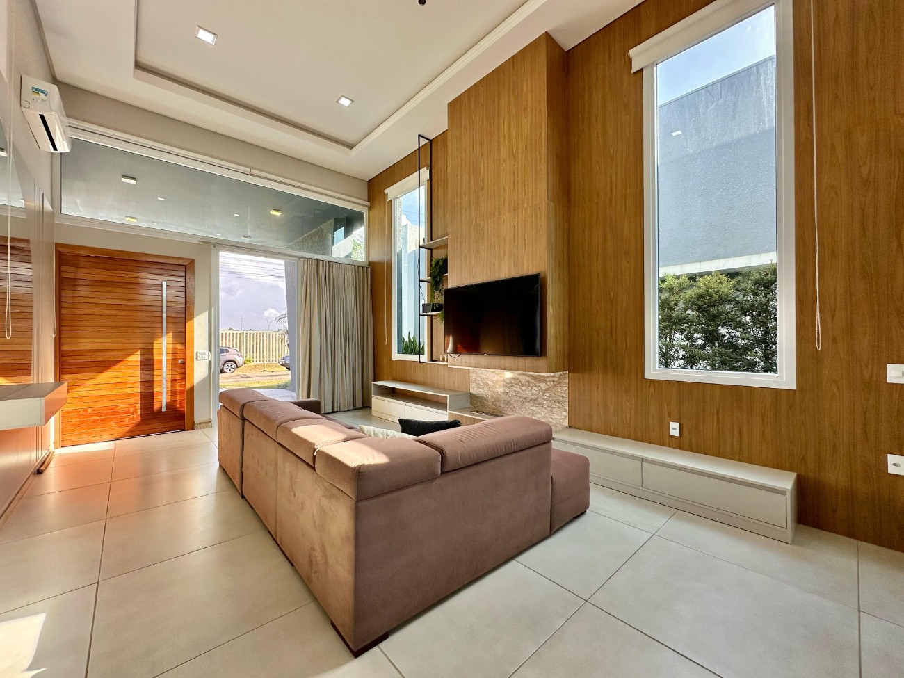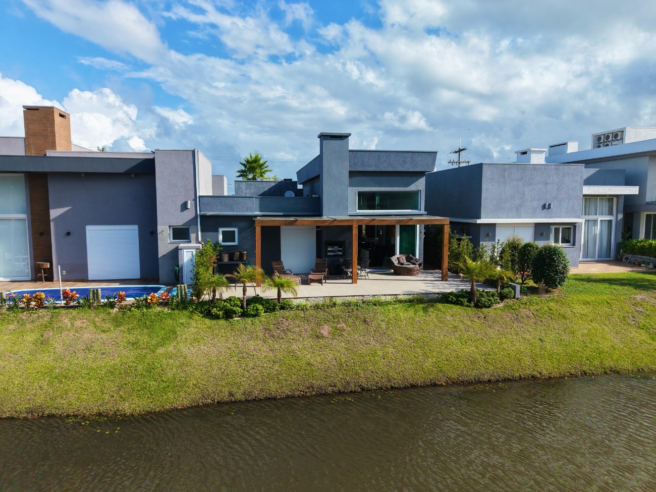 Confira: Casa com 200M² Lote Beira Lago 04 Suítes Lavabo Mobiliada Decorada Ambientes integrados Esquadrias em PVC (automatizadas) Pronta para uso Espaço Gourmet Espera para Jacuzzi Condomínio com infraestrutura completa + Infraestrutura Náutica com acesso a lagoa !