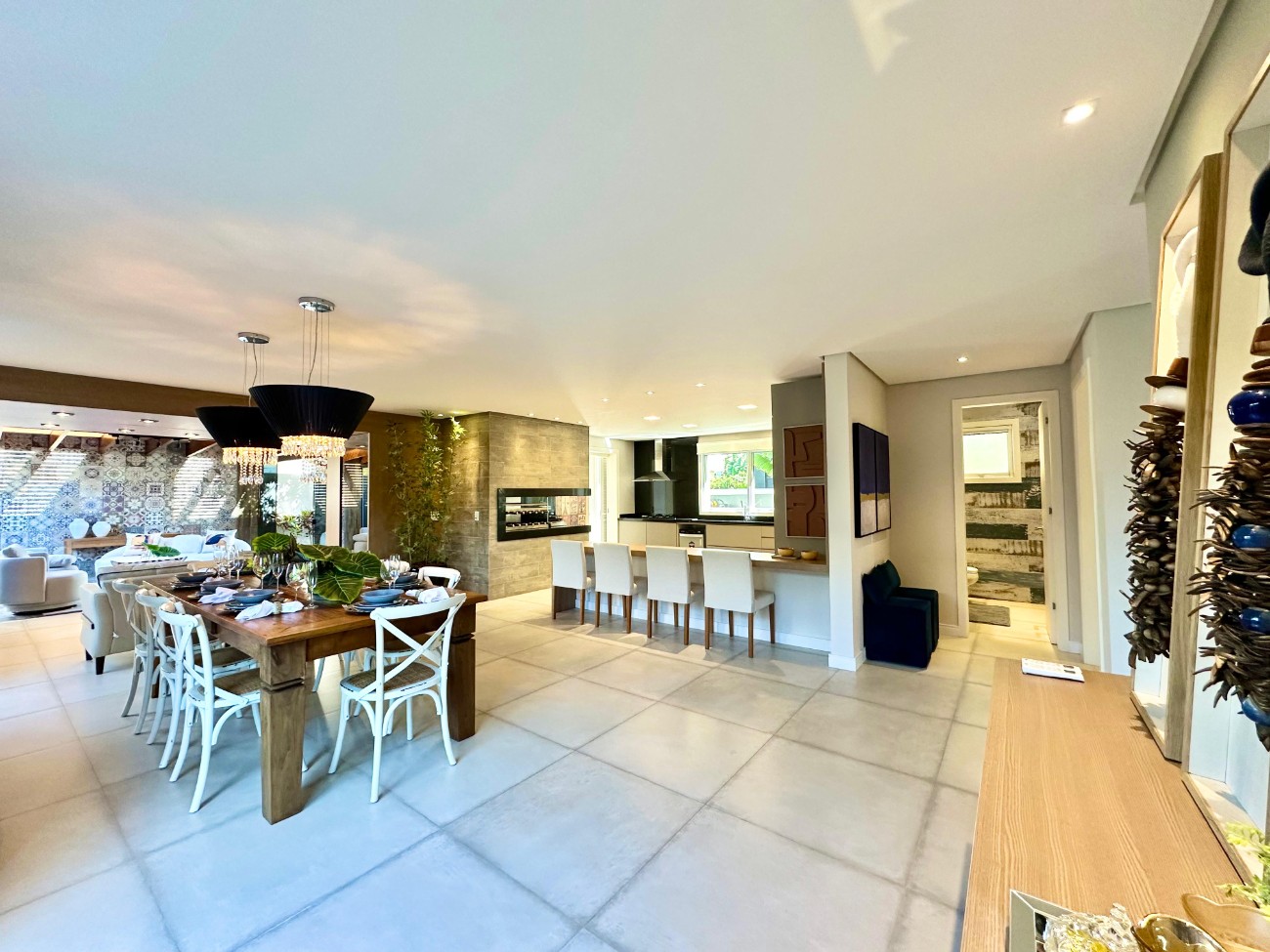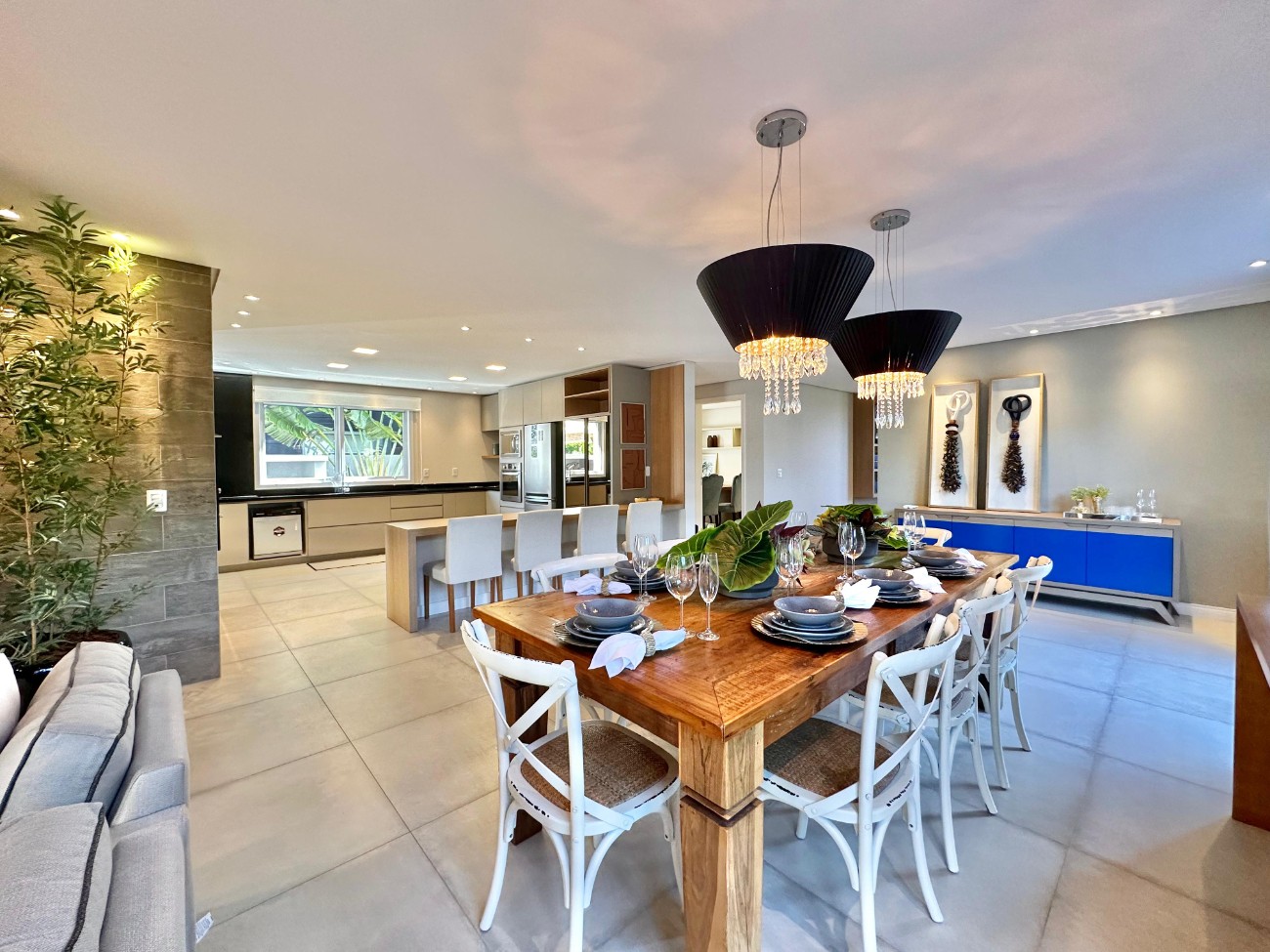 Casa com 432 M² que esbanja conforto e sofisticação sendo 04 Suítes (sendo uma delas master com closet e banheira) Escritório completo que por ser transformado para o Quinto dormitório, lavabo, living estar e jantar. Pé direito Duplo trazendo um requinte ao ambiente, finamente mobiliada e decorada Roupas de cama em 300 fios, cortinas em linho e enxoval completo 200 fios, conforto absoluto projetado para o seu bem estar. Garagem coberta para 2 carro Infra completa de lazer para você e sua família 02 Marinas particulares com acesso direto à lagoa