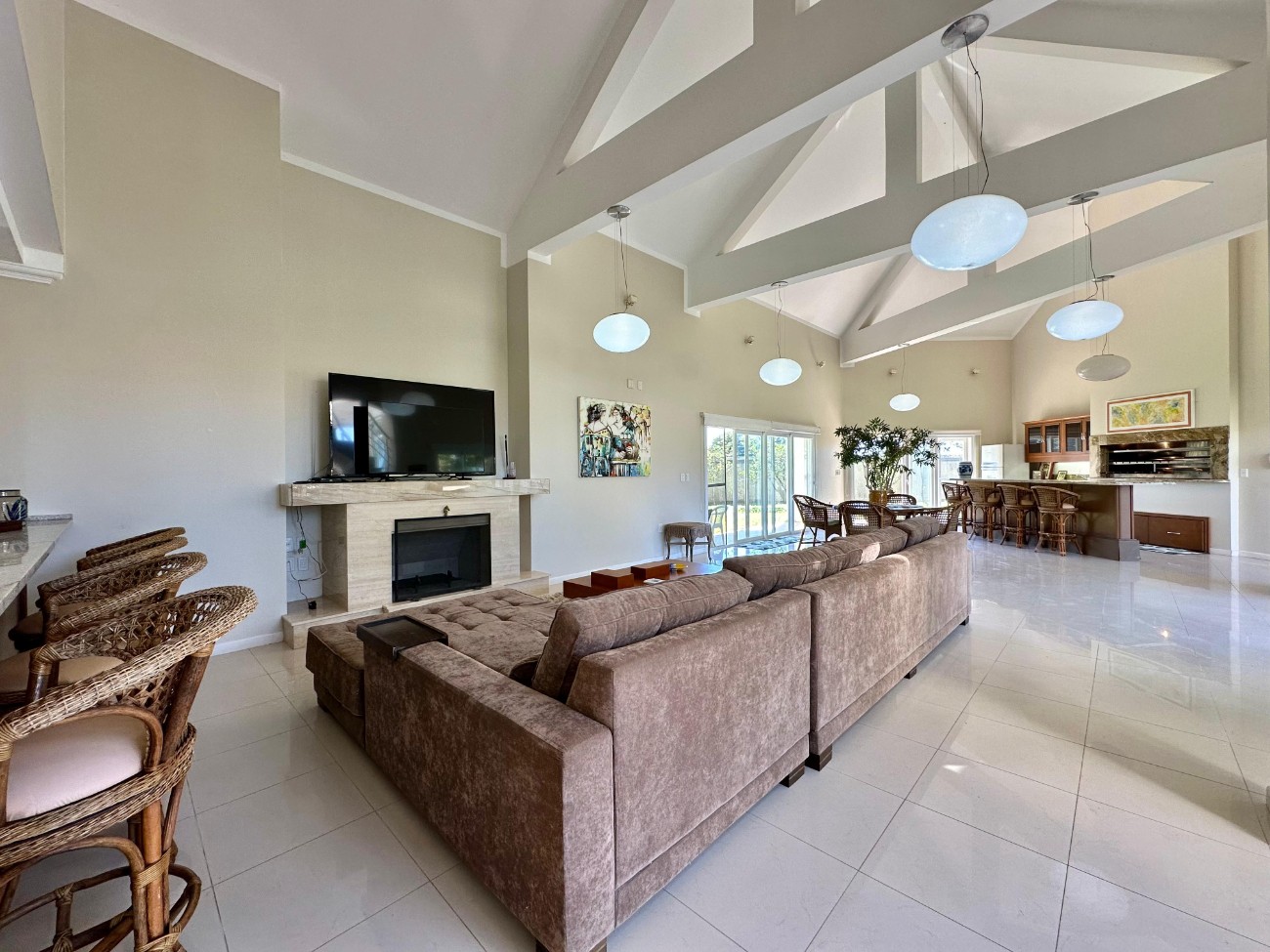 Lote com 1.687, 50M² Casa com 718, 45 M² 08 Suítes Cozinha americana completa Churrasqueira Living 3 ambientes Lareira 2 Lavabos 2 Áreas de serviço Dependência de empregada Mobiliada e decorada Paisagismo com pátio amplo Garagem fechada para 3 carros e estacionamento para 4 carros Condomínio Infra completa Único com campo de golf no litoral Segurança 24H