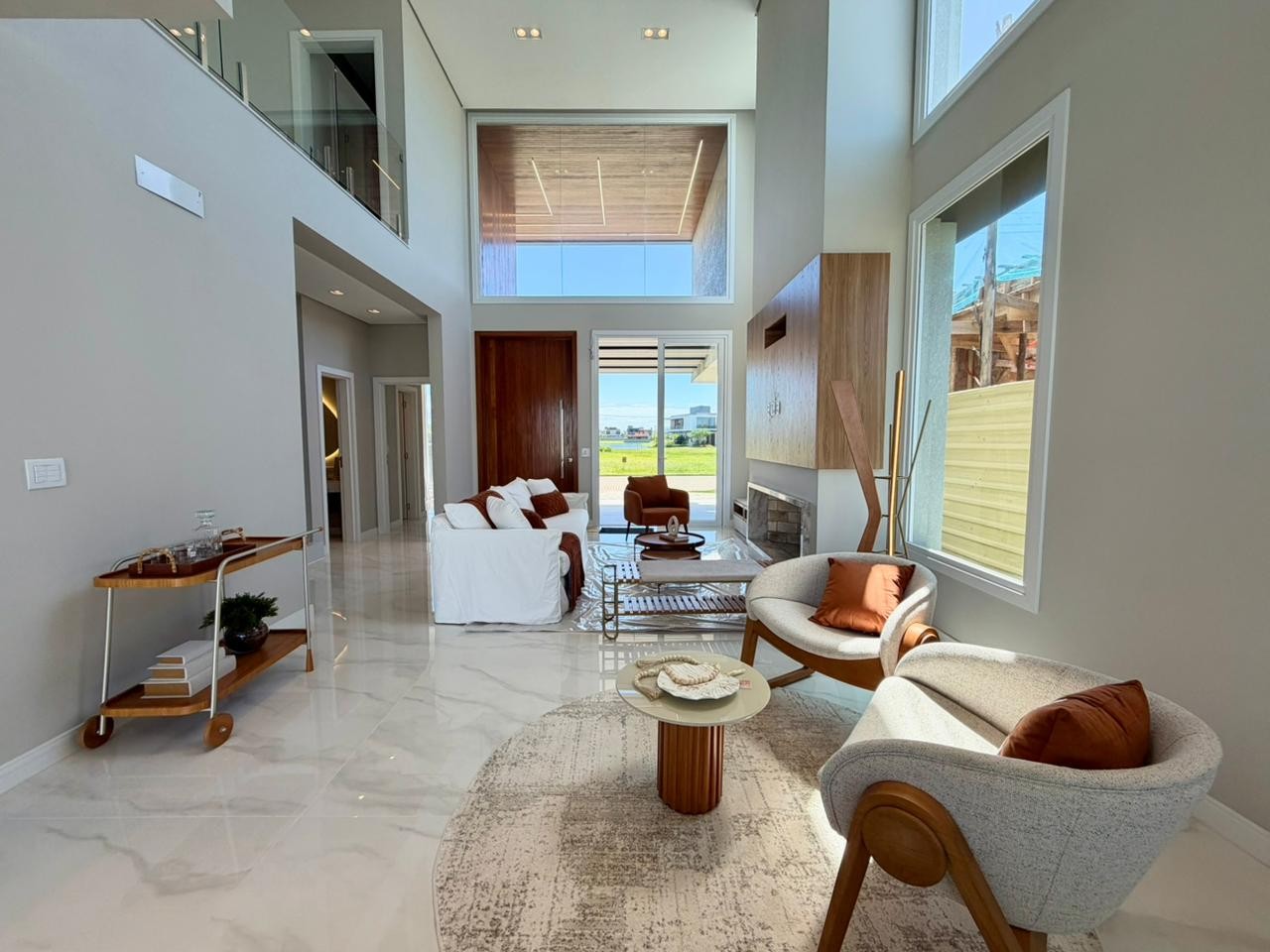 Composta de 4 suítes, escritório, living integrado, lavabo, lavanderia, banheiro auxiliar e abrigo para 2 carros. Sobrado mobiliado e decorado, EXCETO por 1 suíte e o escritório que podem ser convertidos em suíte e closet à opção do comprador. Os móveis da lavanderia e as cortinas (rolo automatizadas no térreo e cortinas de tecido nas suites) serão entregues no decorrer dos próximos 10 dias.